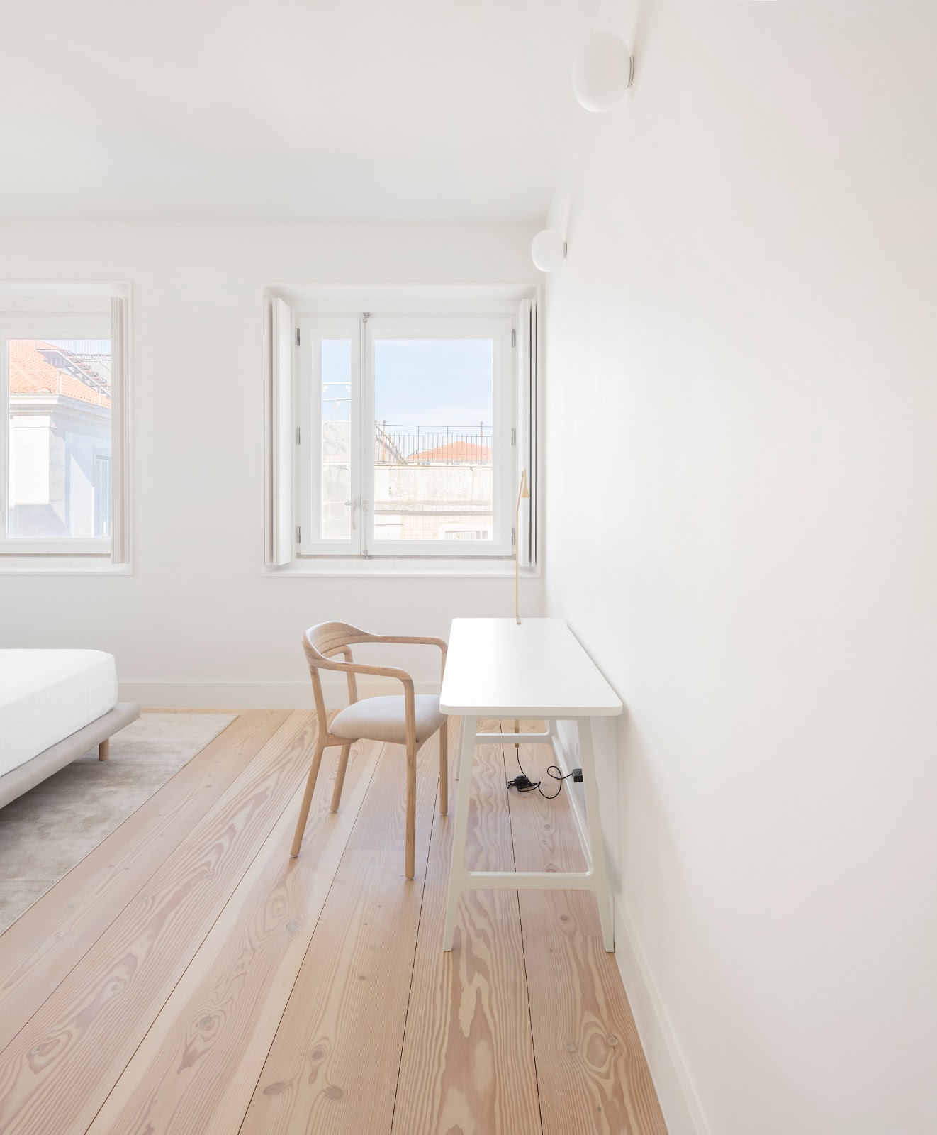 Lisbon based rar.studio designed a minimalist apartment in a building originally designed by Álvaro Siza Vieira in Chiado district.