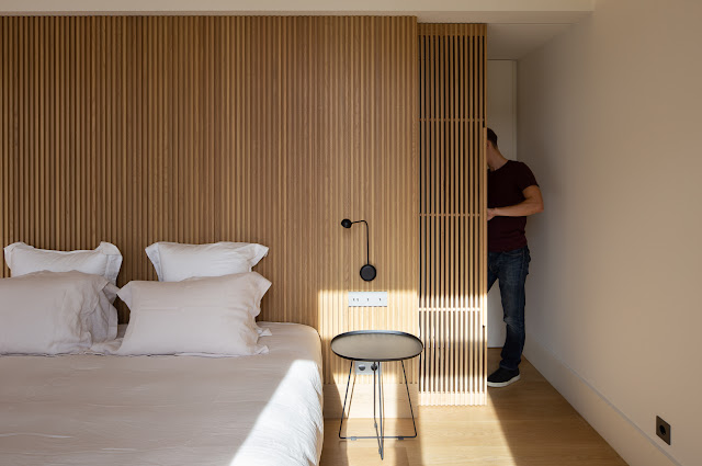 Lisbon based Samuel Torres de Carvalho Architecture renovated a 18th century apartment building on Corpo Santo Street, Lisbon, Portugal, creating new contemporary minimalist living environments, based on natural materiality.